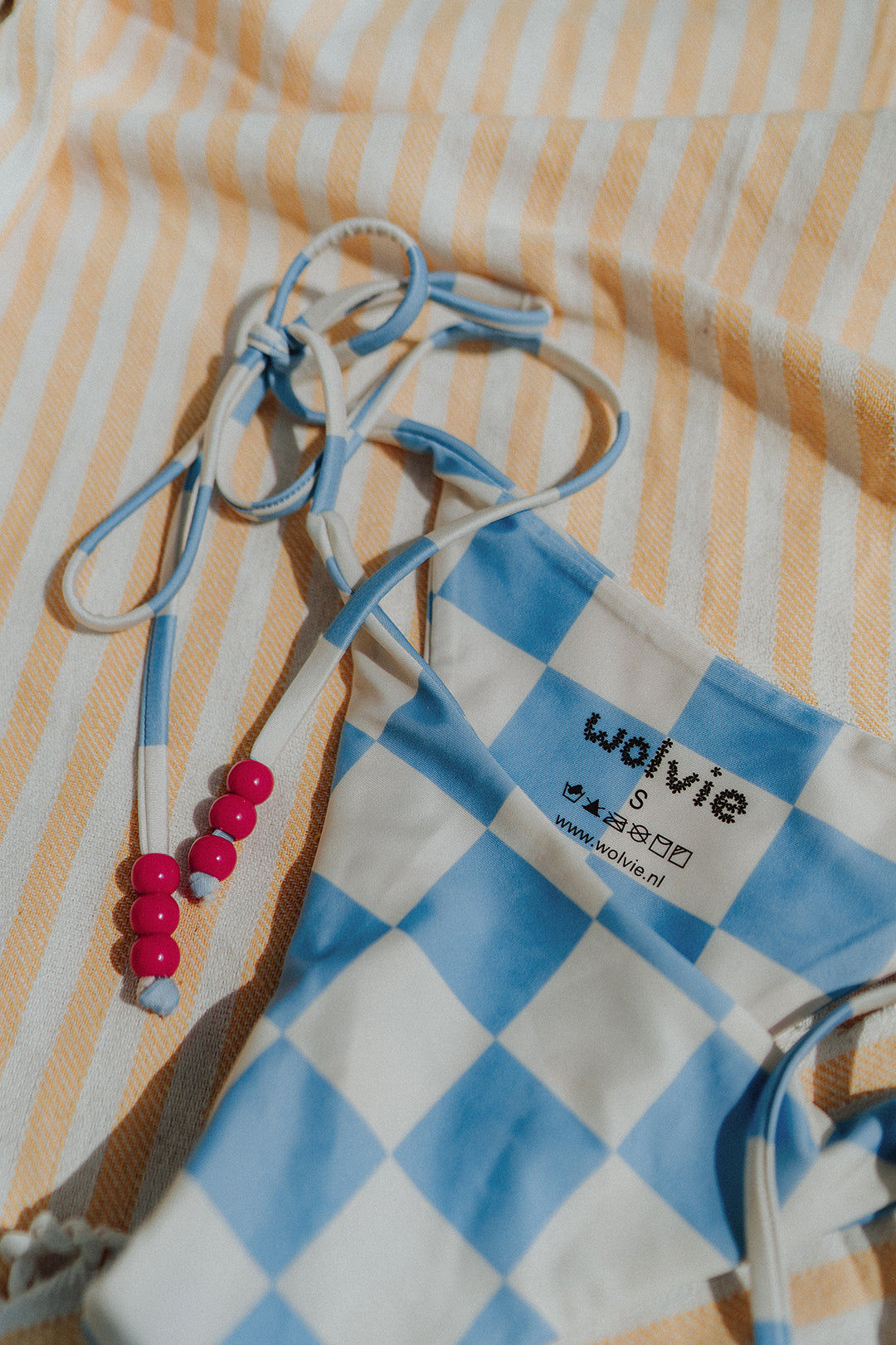 Ladies, are you ready to wear our very first-ever designed Wolvie bikini? šĀ Meet our Cherry Check triangle bikini set, our fresh take on a classic triangle shaped bikini. With softly pre-shaped (removable) cups for subtle support, adjustable straps for a flexible fit, and tie-side bottoms finished with three cherry-red beads on each string. š