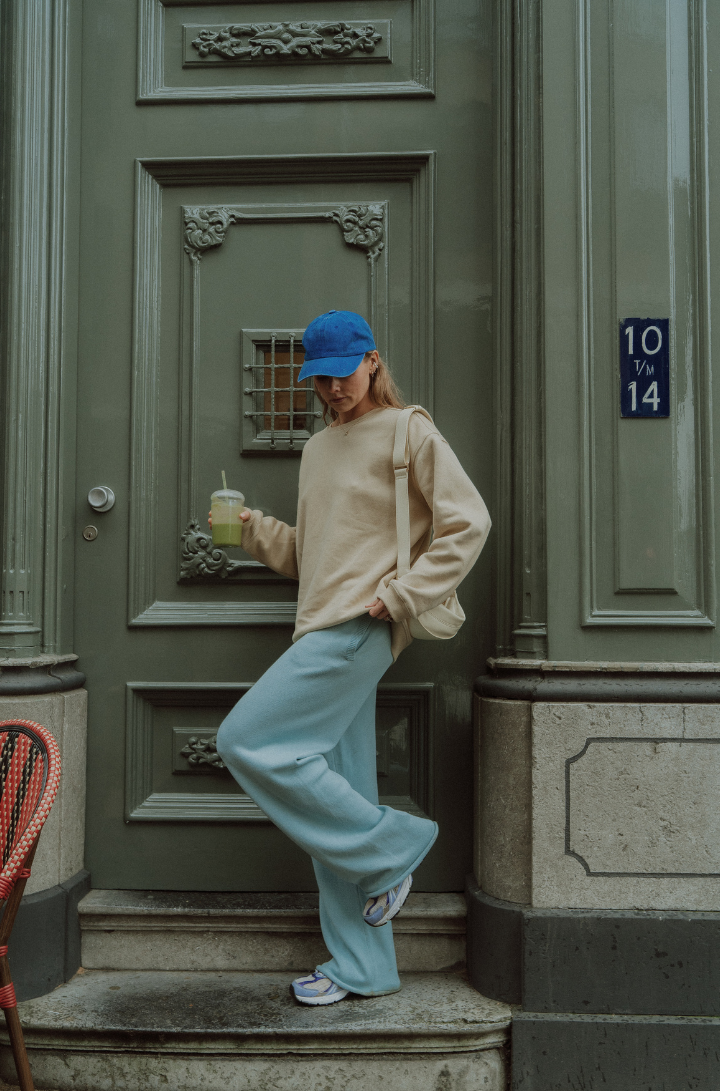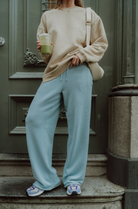 Meet the Clyde Wide Leg Pants in Light Blue - the perfect match to our Bonnie Off-Shoulder (Bonnie & Clyde). Made from 100% ultra-soft organic cotton, these pants blend laid-back comfort with effortless chic. The adjustable drawstring waist lets you customize the fit for ultimate comfort. Whether you're lounging, brunching, or styling them with your favorite top, Clyde’s got you covered.