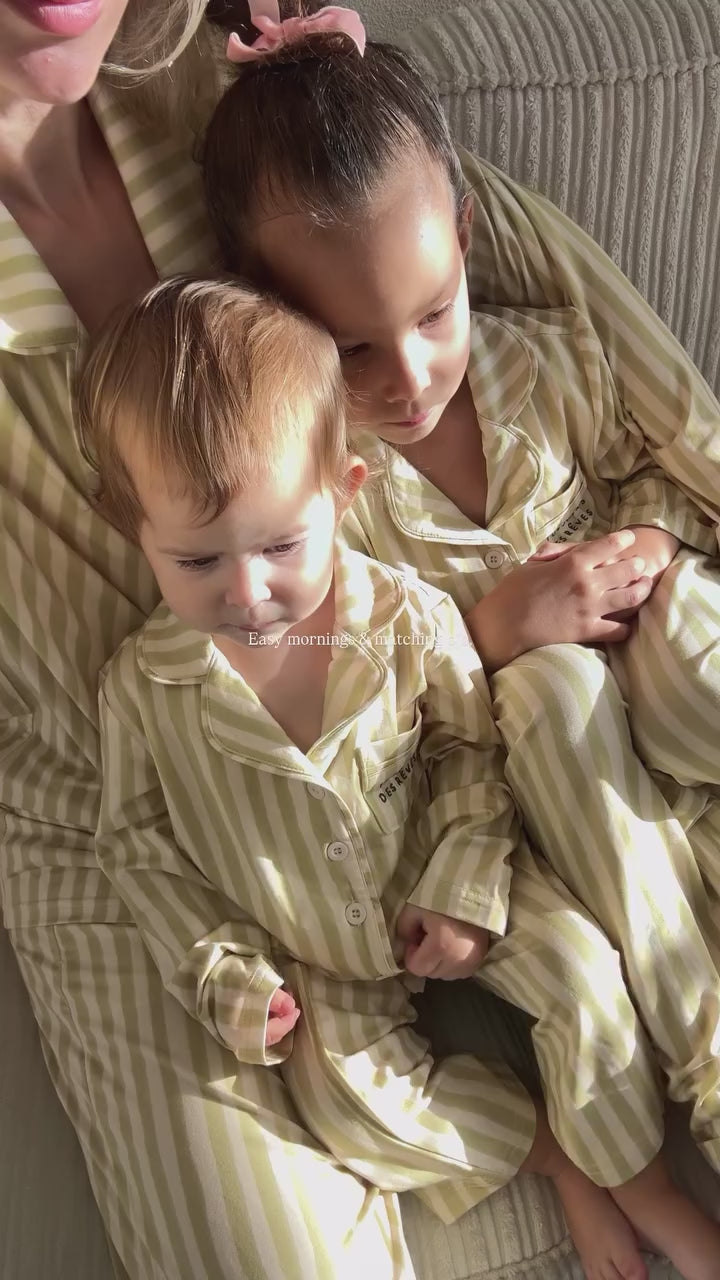 And of course we have designed a matching Toujours Striped PJ set for your little one(s)! Are you ready to match in PJ's this season with your mini's? 🌙☁️💚