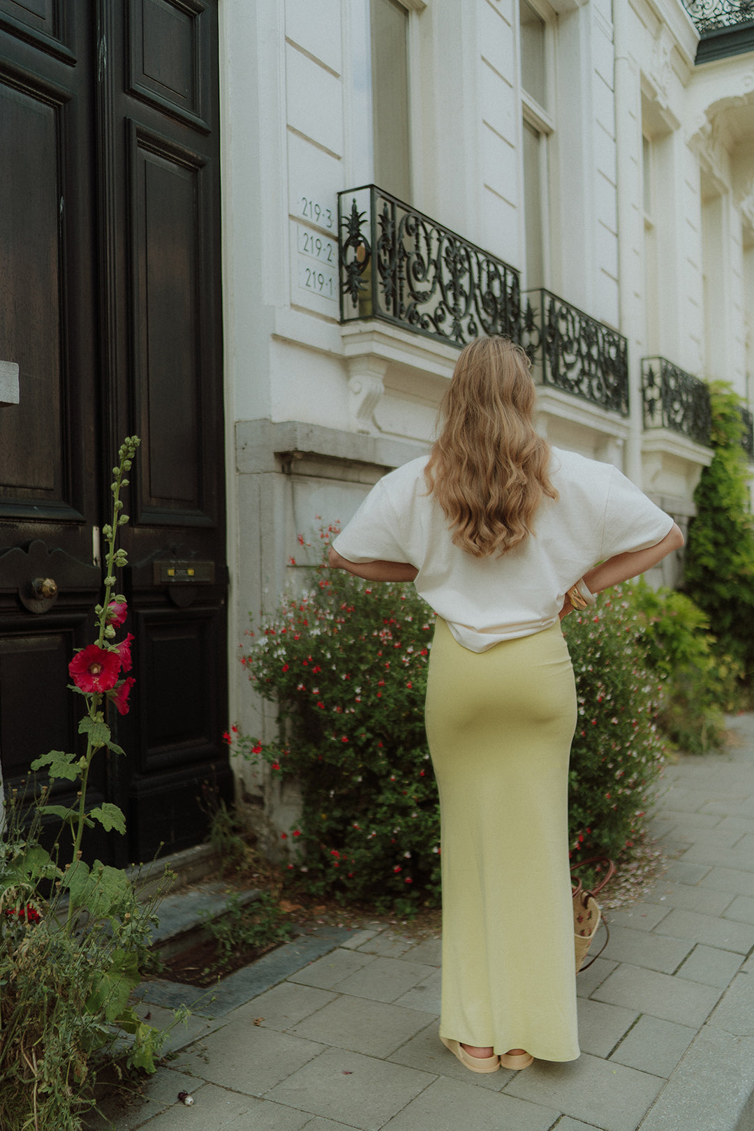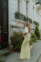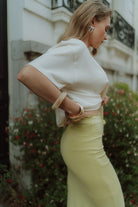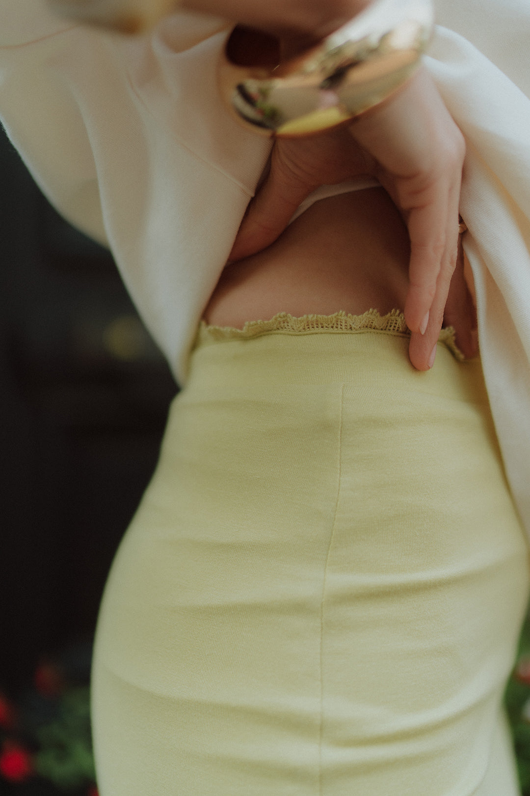 Turn heads in this stunning super stretchy lime green maxi skirt, designed to hug your curves in all the right places. Made from a soft, stretch fabric and fully lined for complete coverage. At the top, a delicate lace tie adds a feminine and playful touch, making it perfect for both casual days and dressed-up evenings.