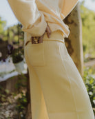 Our Lola Flared Pants in Butter Yellow are soft, stylish, and super flexible. With its foldable waistband it adjusts to your mood. Wear it high and let it comfort your belly. Or fold it down, just as low as you like it. However you style it, Lola’s got your back (and your belly). Also when you're pregnant, because it's suuuper stretchy!